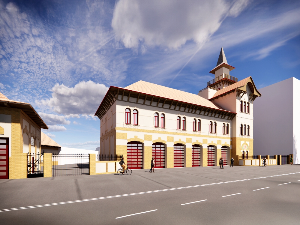 Modernization and energy rehabilitation of the Head of Fire Detachment 2 in Timișoara. The building features a partially accessible basement from the outside. On the ground floor there are the garage, locker rooms and three new volumes: a garage, a guard area and a second-floor storage unit. Access and user-oriented spaces face north. The first floor is dedicated exclusively to fire personnel, housing dormitories and offices, while the second floor is only partially in use, located near the access staircase.